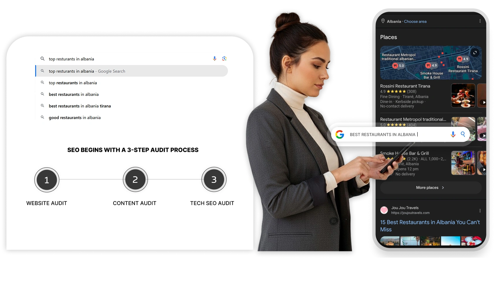 We research the words and phrases your potential customers are typing into Google. By understanding what people are searching for, we help your business show up in the right results. This means more visibility, more traffic, and better chances of converting visitors into clients. We focus on high-traffic and local keywords that matter most to your business, especially in Albania, helping you stand out from the competition and attract the audience that’s already looking for your services or products.