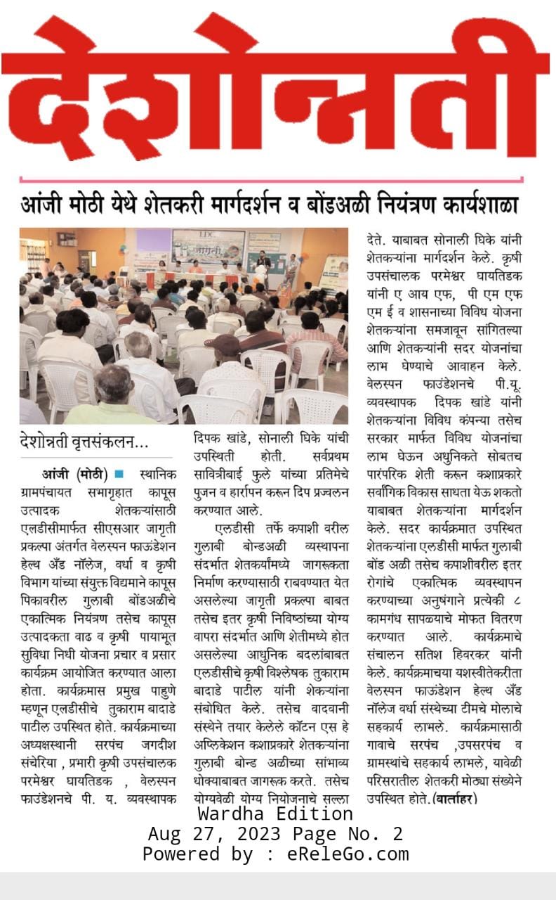 Welspun and Agriculture Dept. conducted ‘Pink Bollworm Awareness Program”