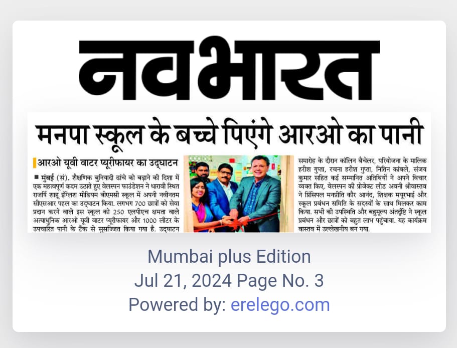 Welspun Foundation inaugurates RO water purifier at BMC school in Dharavi