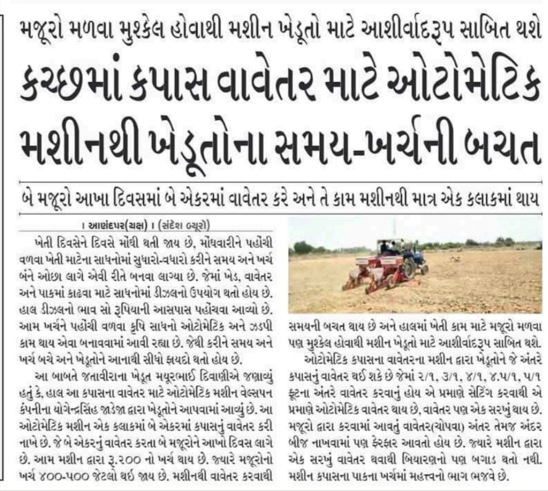 Automatic Seed Planter Machine by Welspun Foundation to empower Kutch's farmers, saves time and efforts