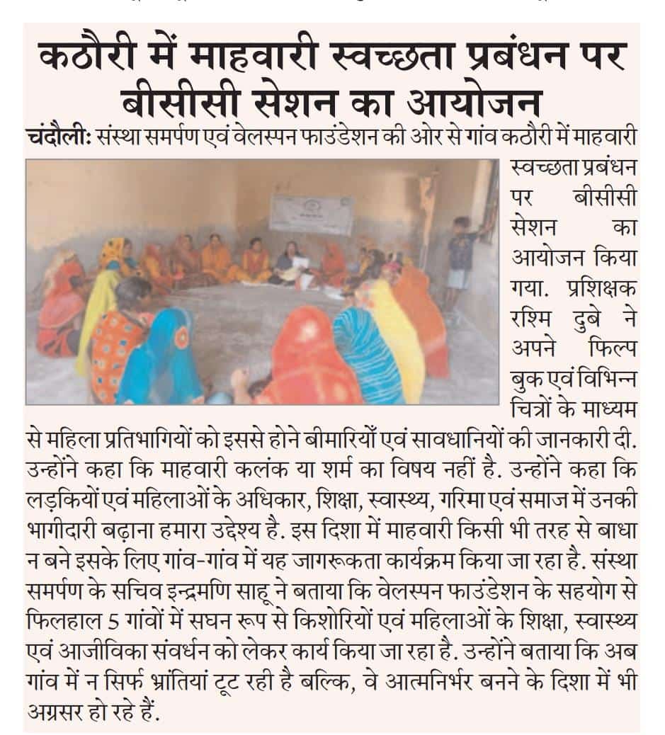 BCC Session on menstrual hygiene for women was organized by Welspun Foundation in Kathuri.