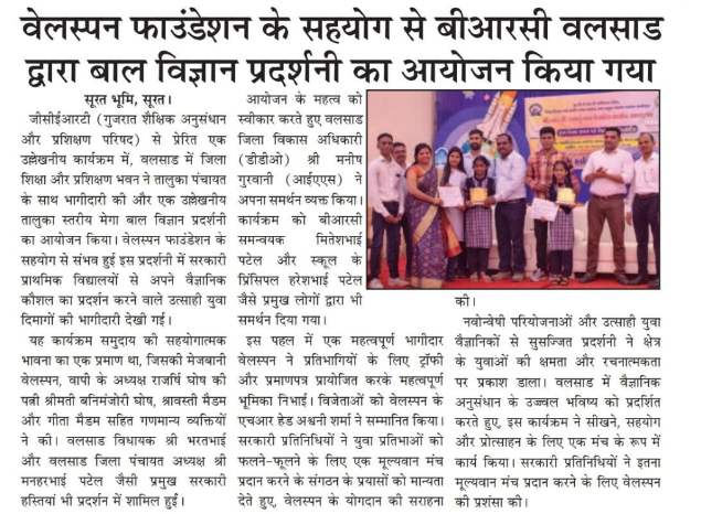 Children's Science Exhibition was organized by BRC Valsad in partnership with the Welshiksha project by Welspun Foundation.
