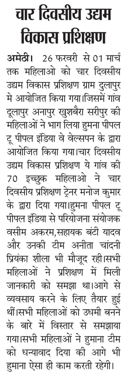 Four-Day Enterprise Development Training provided to Women by Welspun at Dulapur Village