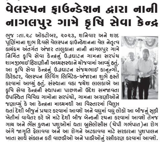 Inauguration of Krishi Seva Kendra in Nani Nagalpur to Enhance Agricultural Practices Through Welspun Foundation's Wel Netrutva Initiative