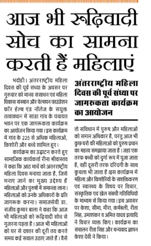International Women's Day celebrated in Badhohi by the Welspun Foundation and the National Human Rights & Women Welfare Organisation