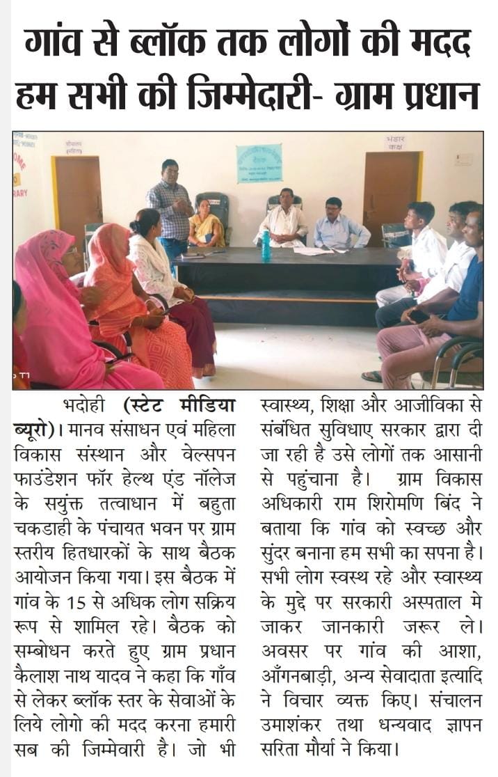 National Human Rights & Women Welfare Organisation Organizes Village-level Meeting in Badhohi in Collaboration with Welspun Foundation