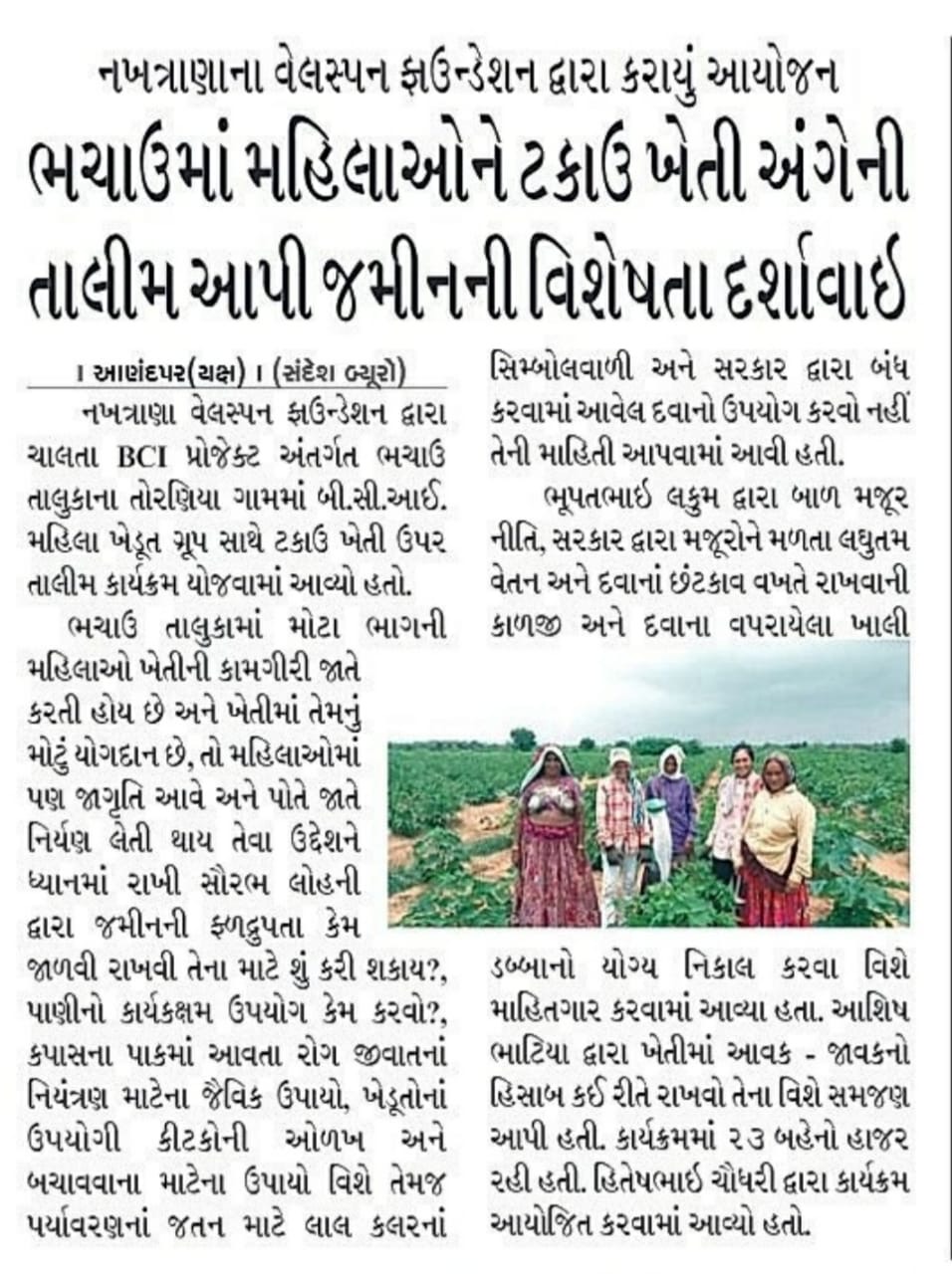 Training On Sustainable Farming for Women Farmers organized by Welspun