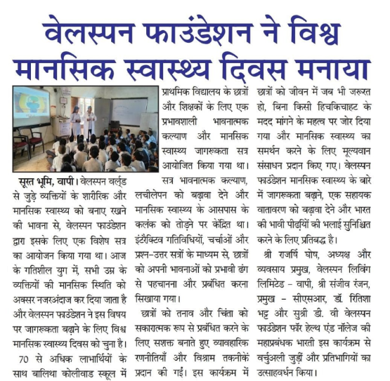 World Mental Health Day Celebrated with Children of Vapi's Government Primary School under Welspun Foundation's Wel Shiksha Initiative